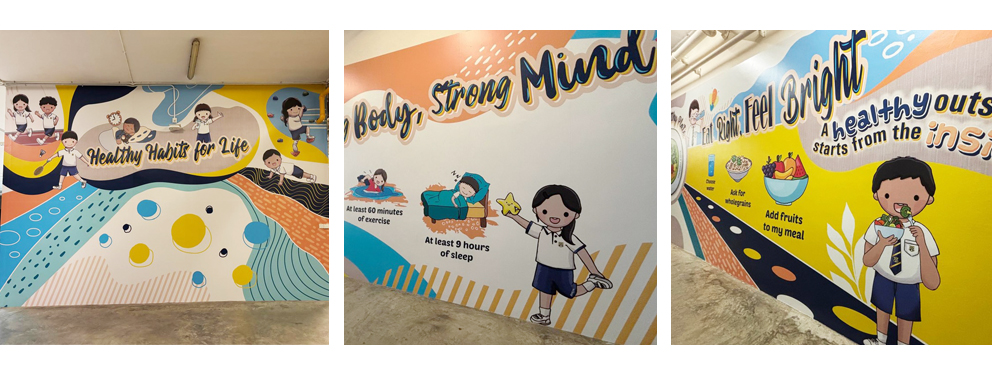 To support this effort, we’ve also created colourful murals in the canteen to teach students about healthy eating and staying active in a fun and engaging way.